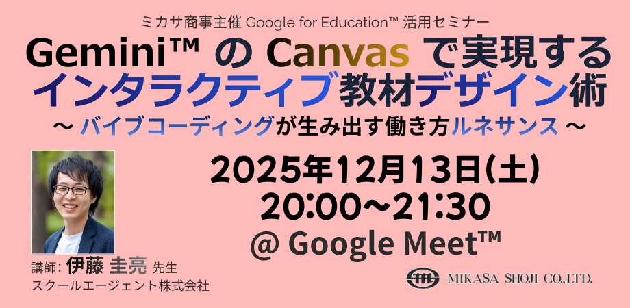 ■イベントタイトル: Gemini の Canvas で実現するインタラクティブ教材デザイン術 〜 バイブコーディングが生み出す働き方ルネサンス 〜
